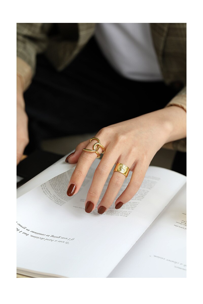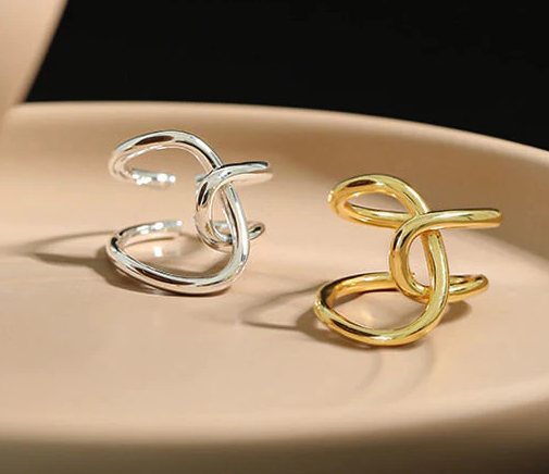 Anillo Asimétrico de nudo, plata 925.  Bañado en oro de 18K.  Ajustable