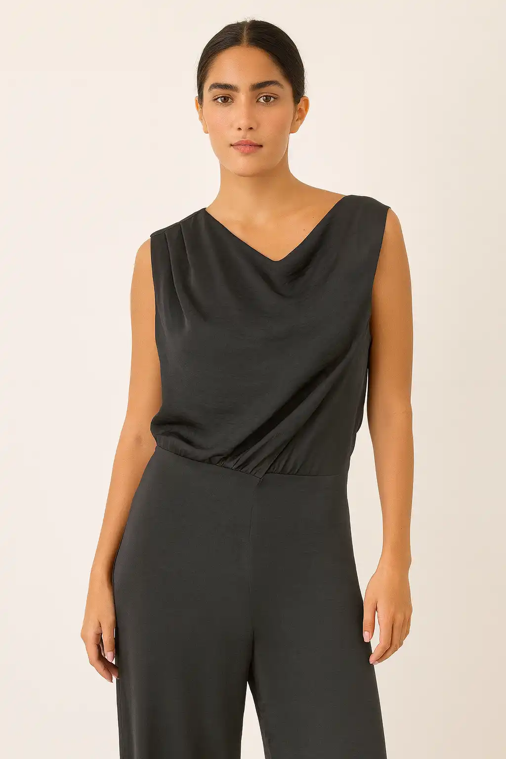 Faride eleva el enterizo con satén que transforma lo práctico en lujoso. El tejido captura luz mientras abraza la figura, creando caída fluida que favorece sin marcar. Este formato integral resuelve tu outfit con brillo sutil: la textura satinada añade ocasión especial a la practicidad de una sola pieza. Perfecto para momentos donde necesitas lucir impecable sin esfuerzo visible. Cuando el satén encuentra diseño inteligente, la sofisticación instantánea se vuelve realidad portátil.