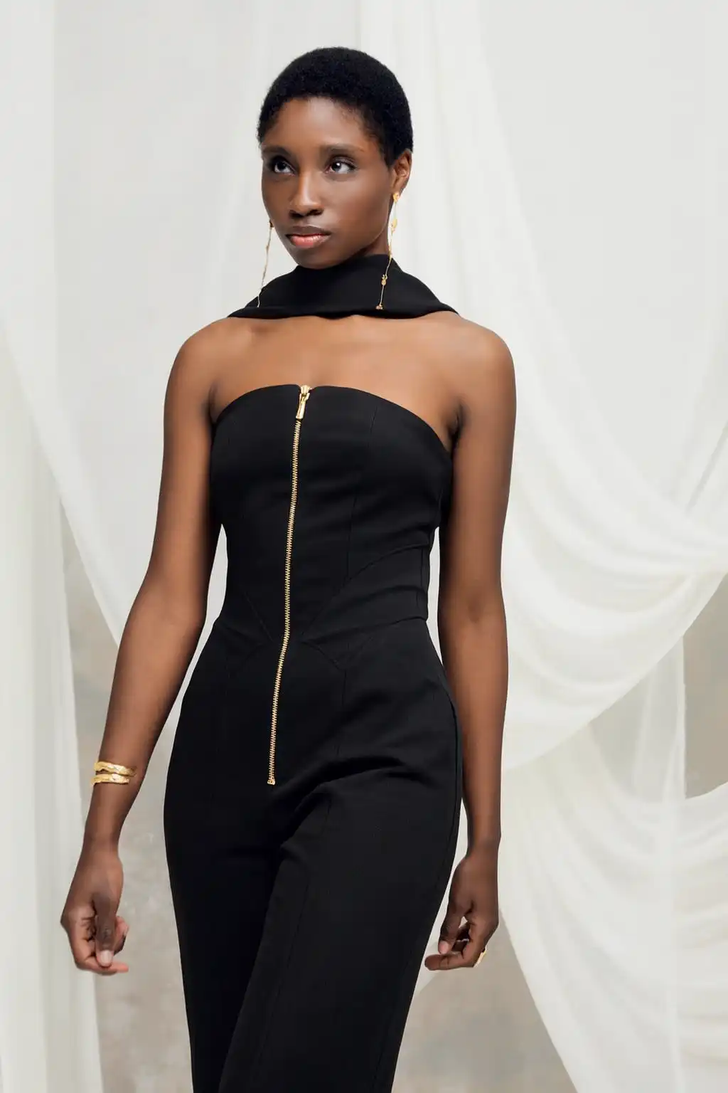 Tamara domina en negro con autoridad que el formato integral amplifica. Faride construye un enterizo donde la oscuridad profunda se encuentra con corte que resuelve tu silueta completa de un solo trazo elegante. El negro elimina ruido visual, permitiendo que tu presencia hable sin distracciones. Perfecto para días donde necesitas impacto inmediato sin esfuerzo aparente. Cuando el poder se viste de cuerpo completo, Tamara lo ejecuta con precisión impecable en la paleta más contundente.