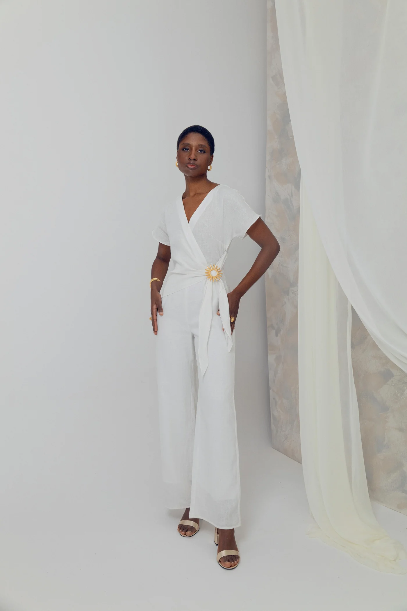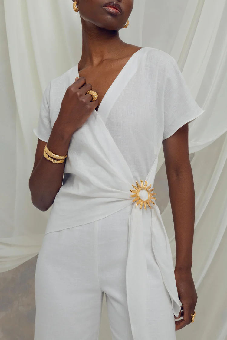 VESTIDO LUANA BLANCO CON BROCHE DORADO by Faride